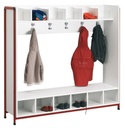 Beukenbank met zitting en rugleuning van multiplex. Versteviging tussen de poten.