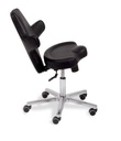 Geavanceerd synchroonsysteem met zittingvertaling en negatieve kanteling. Hoogteverstelling door veiligheidslift. 5-steronderstel in zwart versterkt nylon op wielen.