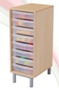 Opbergkar op wielen (tot 3 karren) voor CDCBPRES-display. Verkrijgbaar in beukenhout of blauw.